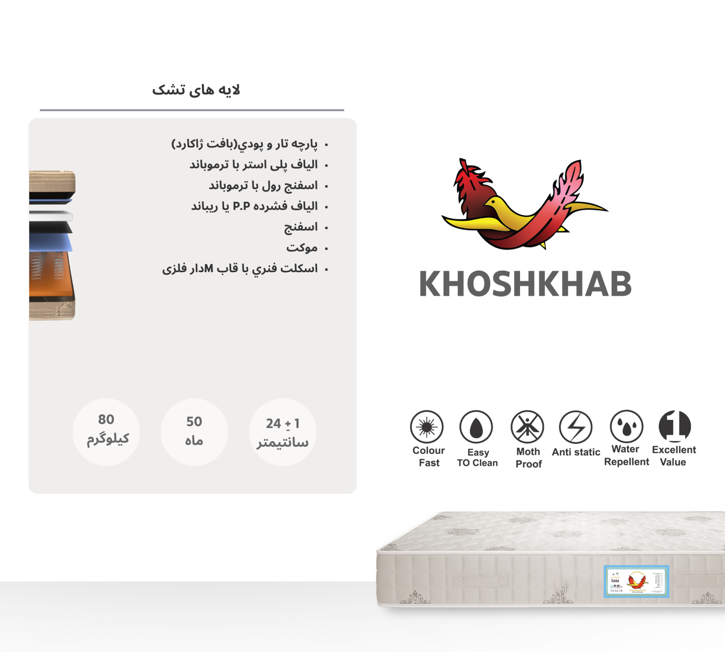 این محصول با دوام طولانی، تهویه مناسب و طراحی ارگونومیک، گزینهای مطمئن برای کسانی است که سلامت خواب و استحکام تشک را در اولویت قرار میدهند.